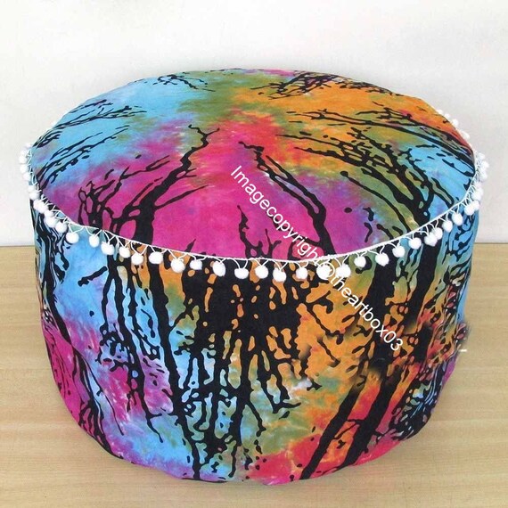 Tie Dye Forest Mandala Round Seating Pouf Cover Ottoman Etsy