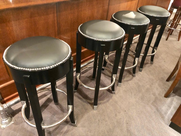 French Art Deco Style Bar Stools Custom Chrome And Black Ruhlmann