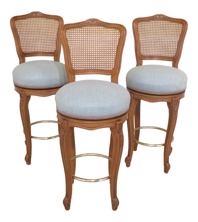 French Country Louis Xv Style Vintage Cane Back Swivel Bar Stools