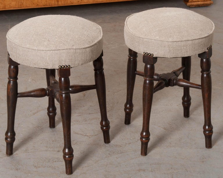 Pair Of 19th Century English Upholstered Mahogany Stools For Sale