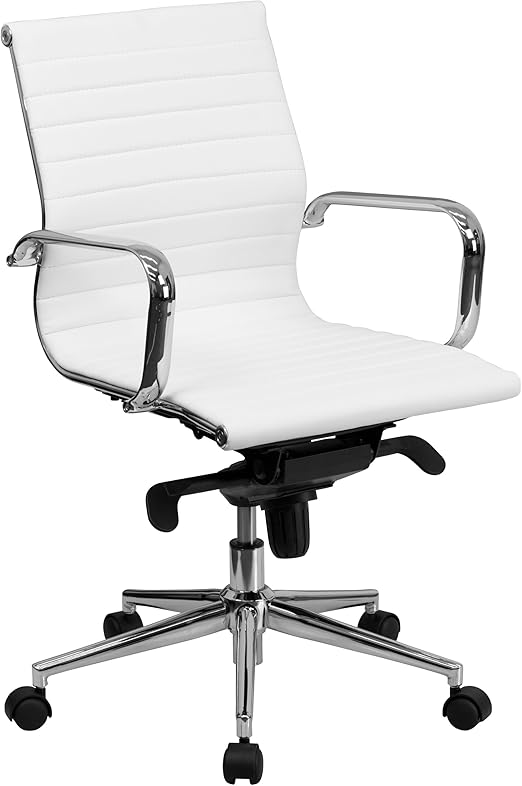 Amazon Com Flash Furniture Mid Back White Ribbed Leather Swivel