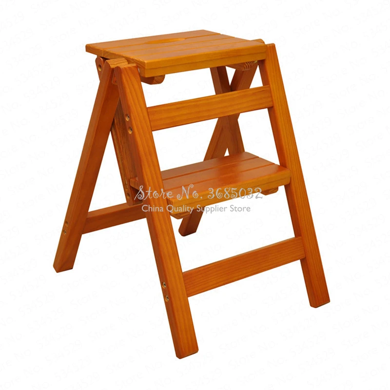 D Multifunction Folding Solid Stool Wood Ladder Ascending Platform