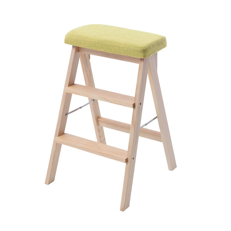 Folding Three Step Solid Wood Step Stool Home Foldable Ladder