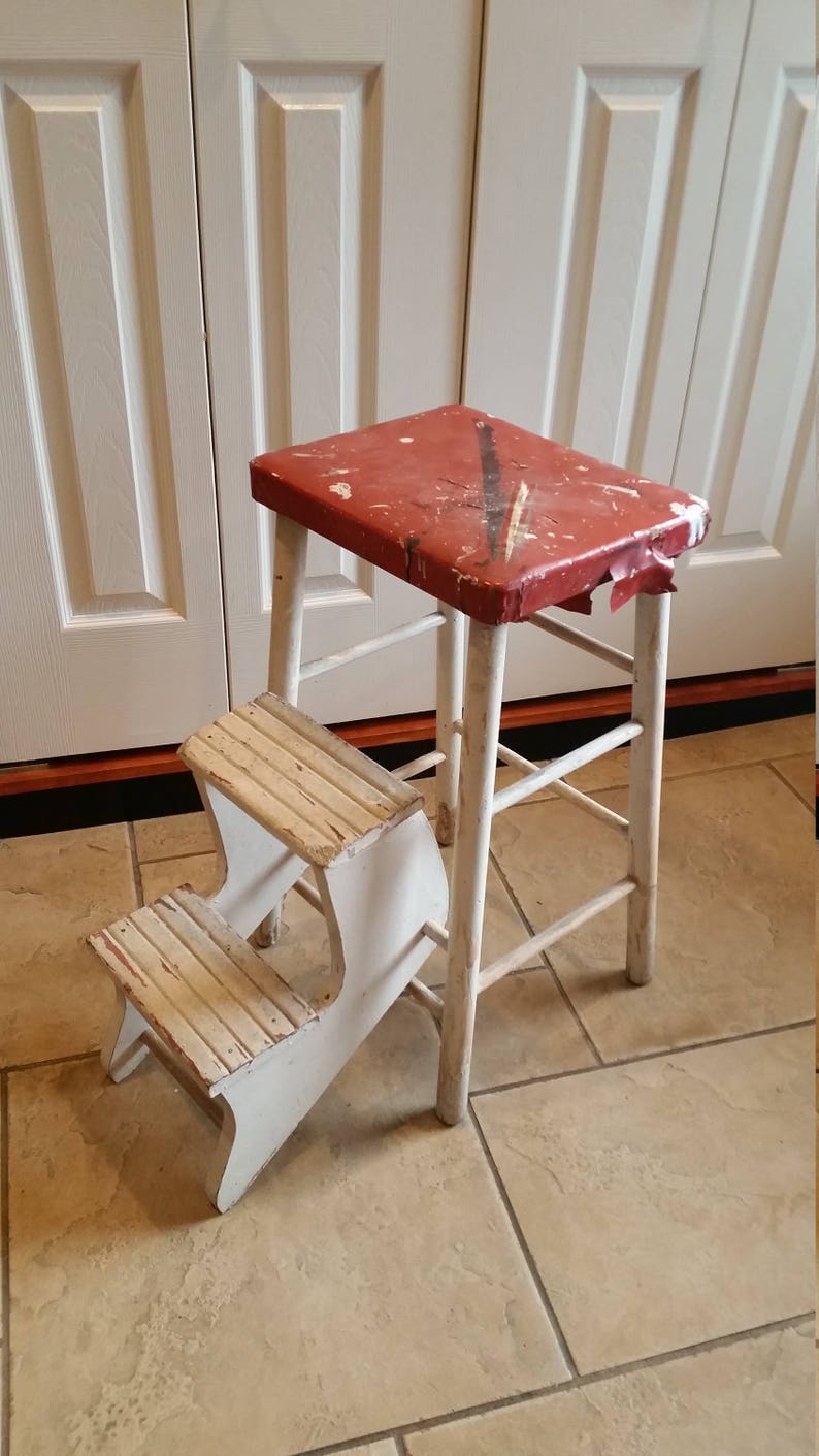 Vintage Wooden Step Stool Folding Steps Crackled Paint Etsy