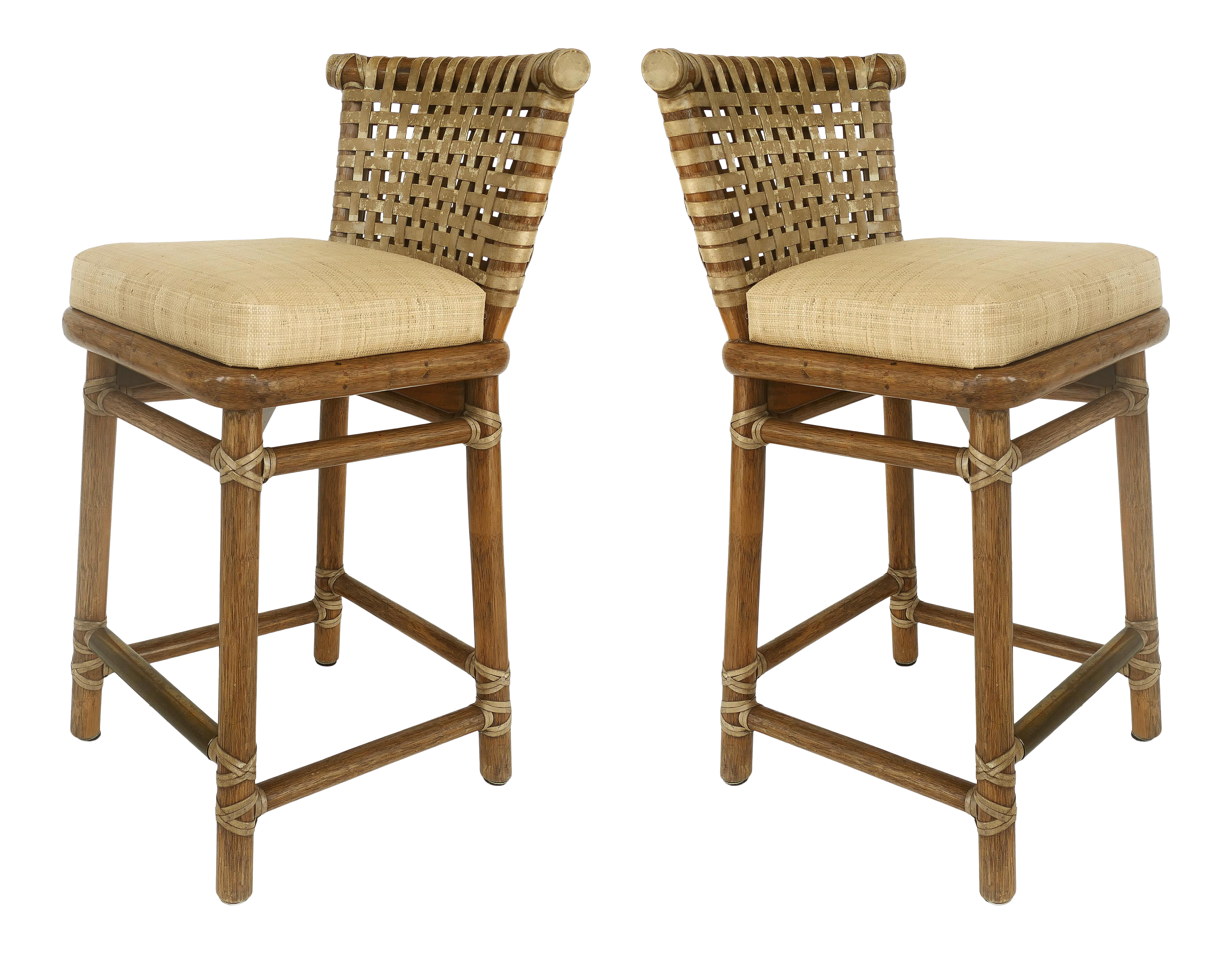 Mcguire San Francisco Leather Bound Counter Stools With Raffia