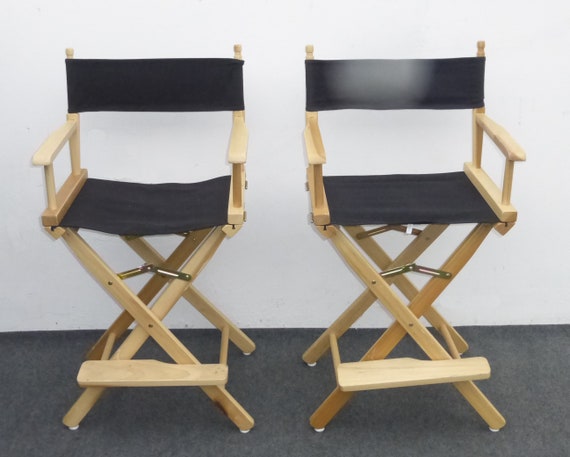 Pair Collapsible Wooden Director Black Chairs Barstools Bar Etsy