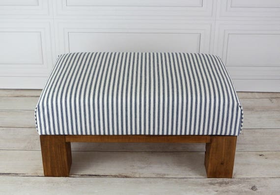 Upholstered Ottoman Navy Small Footstool Farmhouse Decor Etsy