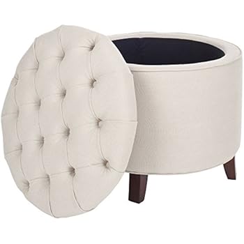 Amazon Com Storage Ottoman Footstool With Round Tufted Pure Linen