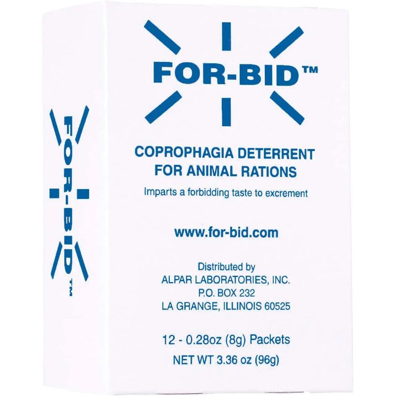 For bid stool eating preventative 12 packets of forbid for bid stops coprophagy pets eating stool. For bid was founded and created in 1960 by charles damaskus a chemist who recognized the need for the product while speaking with his local veterinarian about the difficulties of finding a solution for dogs eating their feces. Vegetable protein and sodium glutamate work in the digestive system to give stools a bad taste.