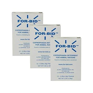 Pets eating stool is known as coprophagy. For bid stool eating preventative 12 packets of forbid for bid stops coprophagy pets eating stool. Stop stool eating with for bid.