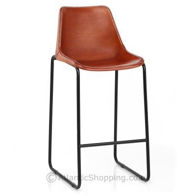 Genuine Brown Leather And Iron Bar Stool Interior Furniture