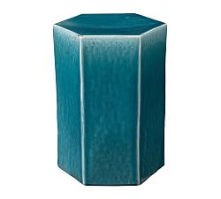 Garden Stool In Chinese Ceramic In Hexagonal Shape With Blue And