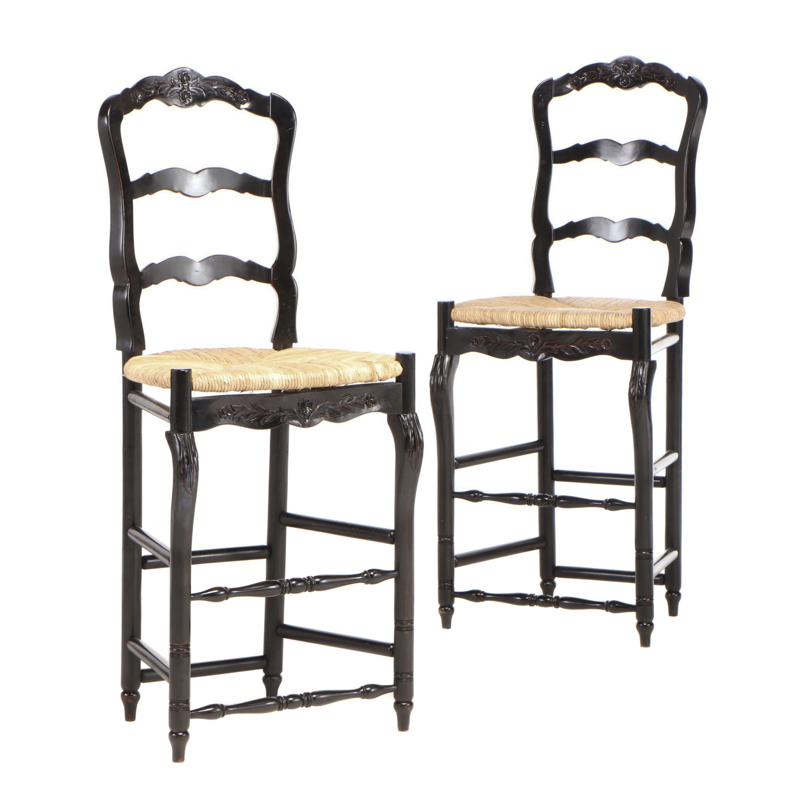 Pair Of French Provincial Style Ebonized Bar Stools Ebth