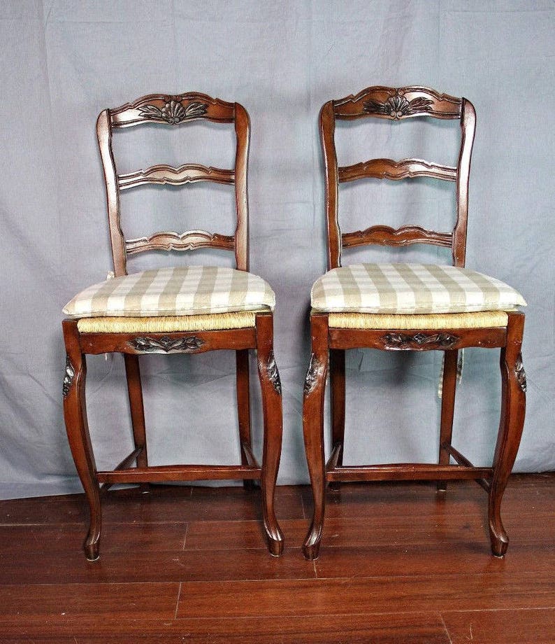 Pair 2 French Country Bar Counter Chairs Stools Rush Seat Side Etsy