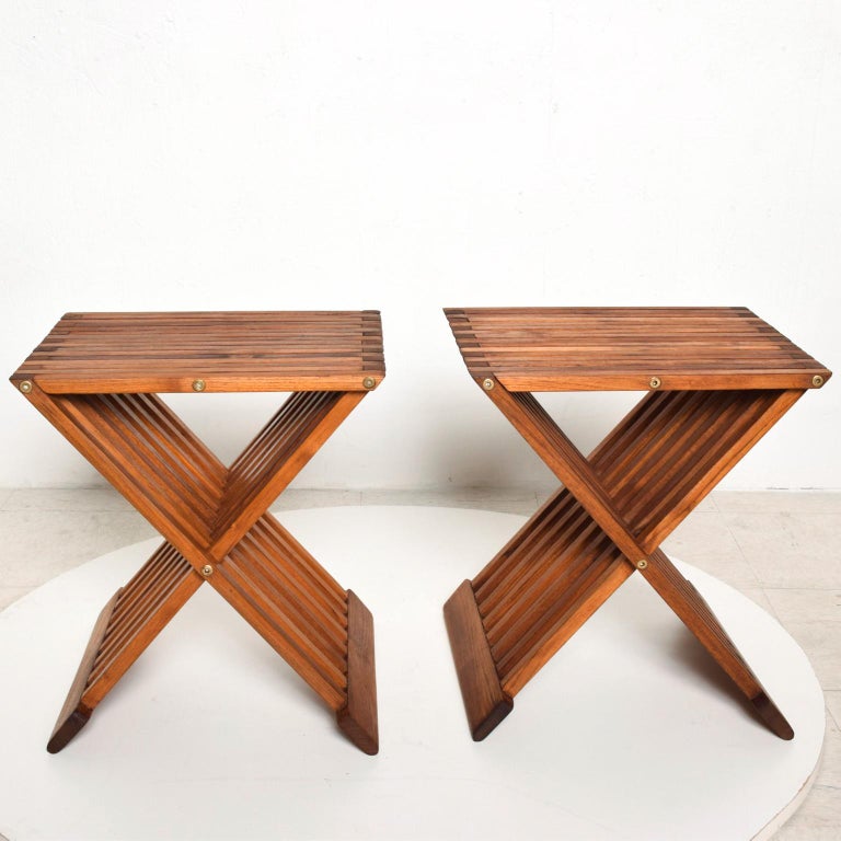 Mid Century Modern Pair Of Teak Folding Side Tables For Sale At