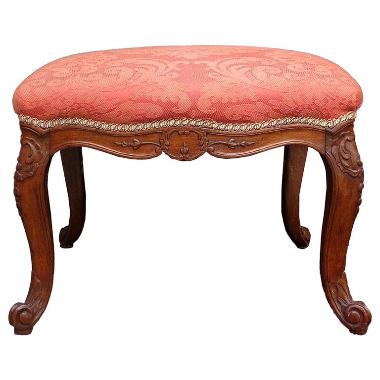 Sold French Carved Walnut Antique Bench Or Stool New Upholstery