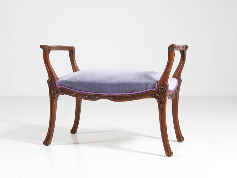 French Walnut Art Nouveau Bench Or Stool With Armrests 1900s For