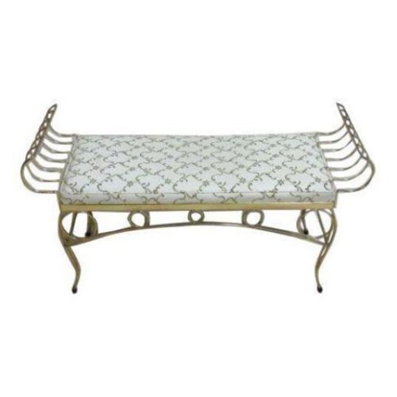 Vintage French Regency Scrolled Metal Gold Window Bench Seat Stool