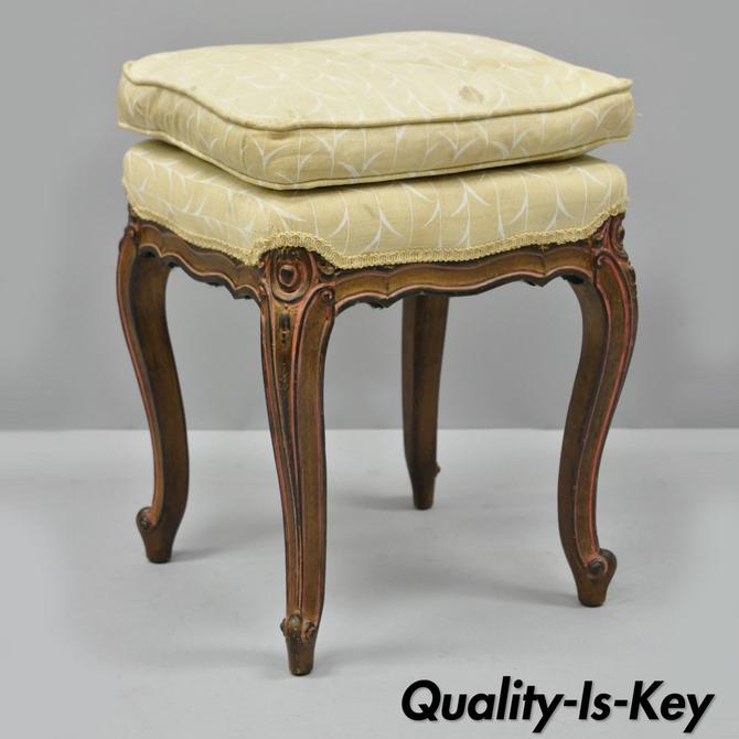 Vintage French Provincial Louis Xv Style Upholstered Stool Bench