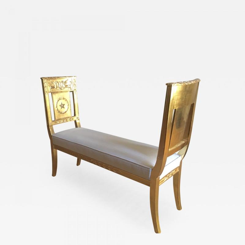 French Empire Gold Leaf Carved Wood Bench Stools Seating