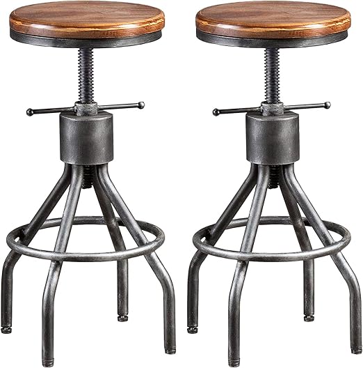 Amazon Com Lokkhan Vintage Industrial Bar Stool Height Adjustable