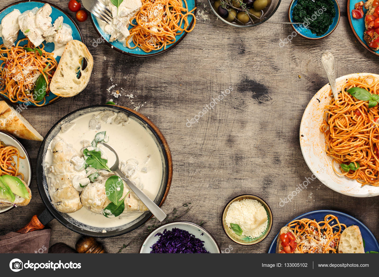 Frame From Different Food Chicken Breast Italian Pasta And App