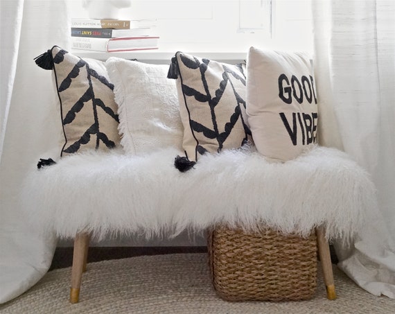 Bench Ottoman Genuine White Mongolian Lamb Fur Bench For Etsy