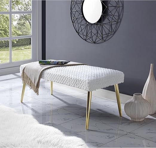 Amazon Com Lamonte White Faux Fur Bench Textured Leaf