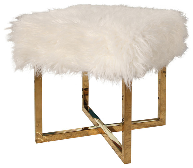 Yvette Stainless Steel Faux Fur Stool White Abbyson Target