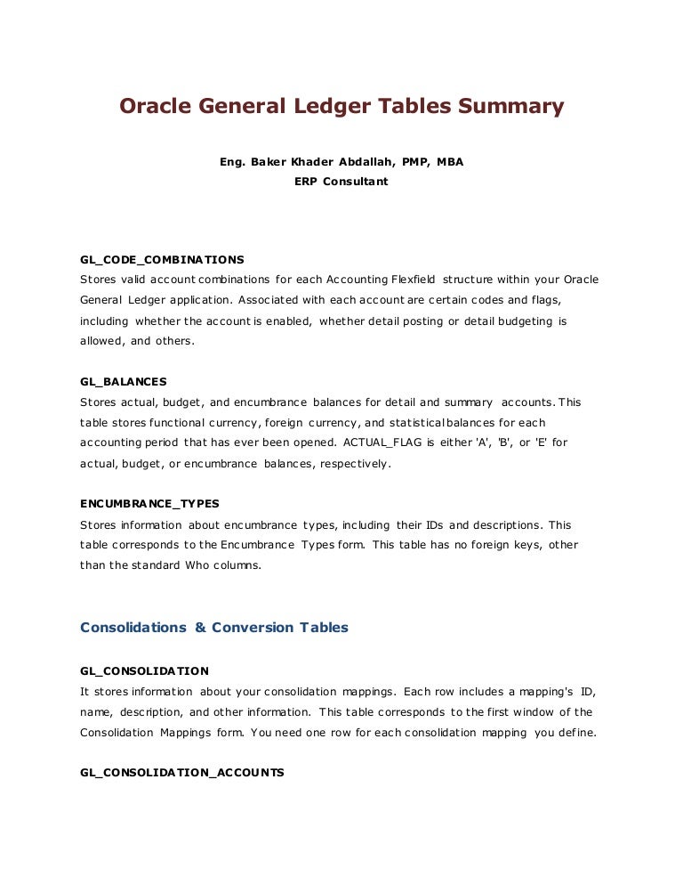Oracle General Ledger Overview Of Table Structure Debits And