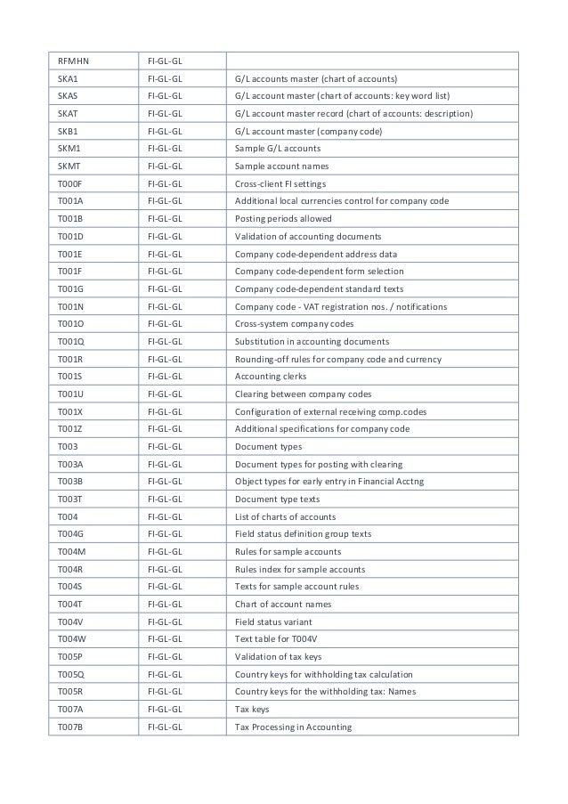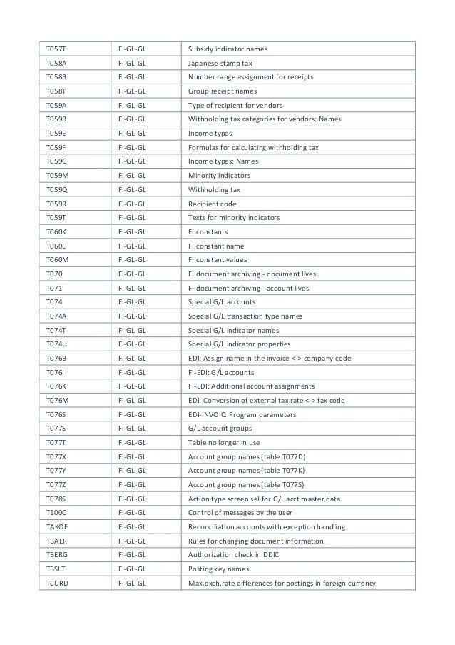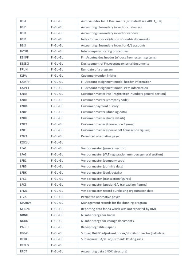 Sap Fi Co Page 3 Of 10 Fico Tables Transaction Codes