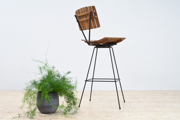 Metal Slat Swivel Bar Stool By Arthur Umanoff For Shaver Howard