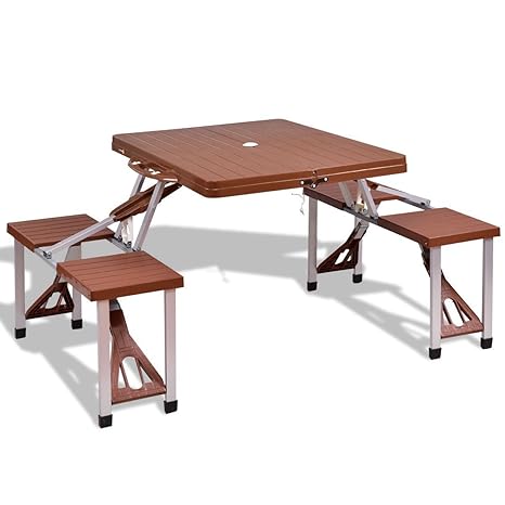 Costway Plastic Portable Suitcase Picnic Table Brown Walmart Com