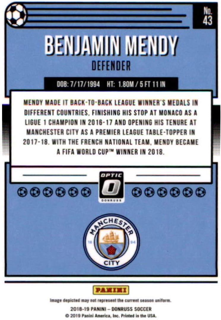 Amazon Com 2018 19 Donruss Optic 43 Benjamin Mendy Manchester
