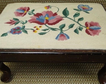 Vintage Foot Stool Needlepoint Footstool Petit Point Foot Stool