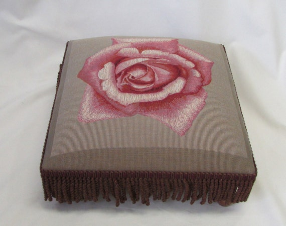 Needlepoint Footstool Brocade Footstool Tapestry Footstool