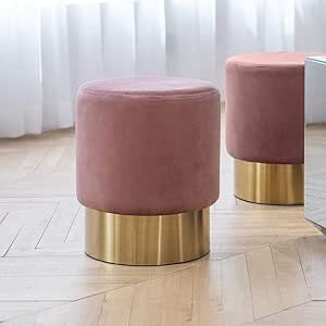 Amazon Com Art Leon Small Round Velvet Ottoman Upholstered With