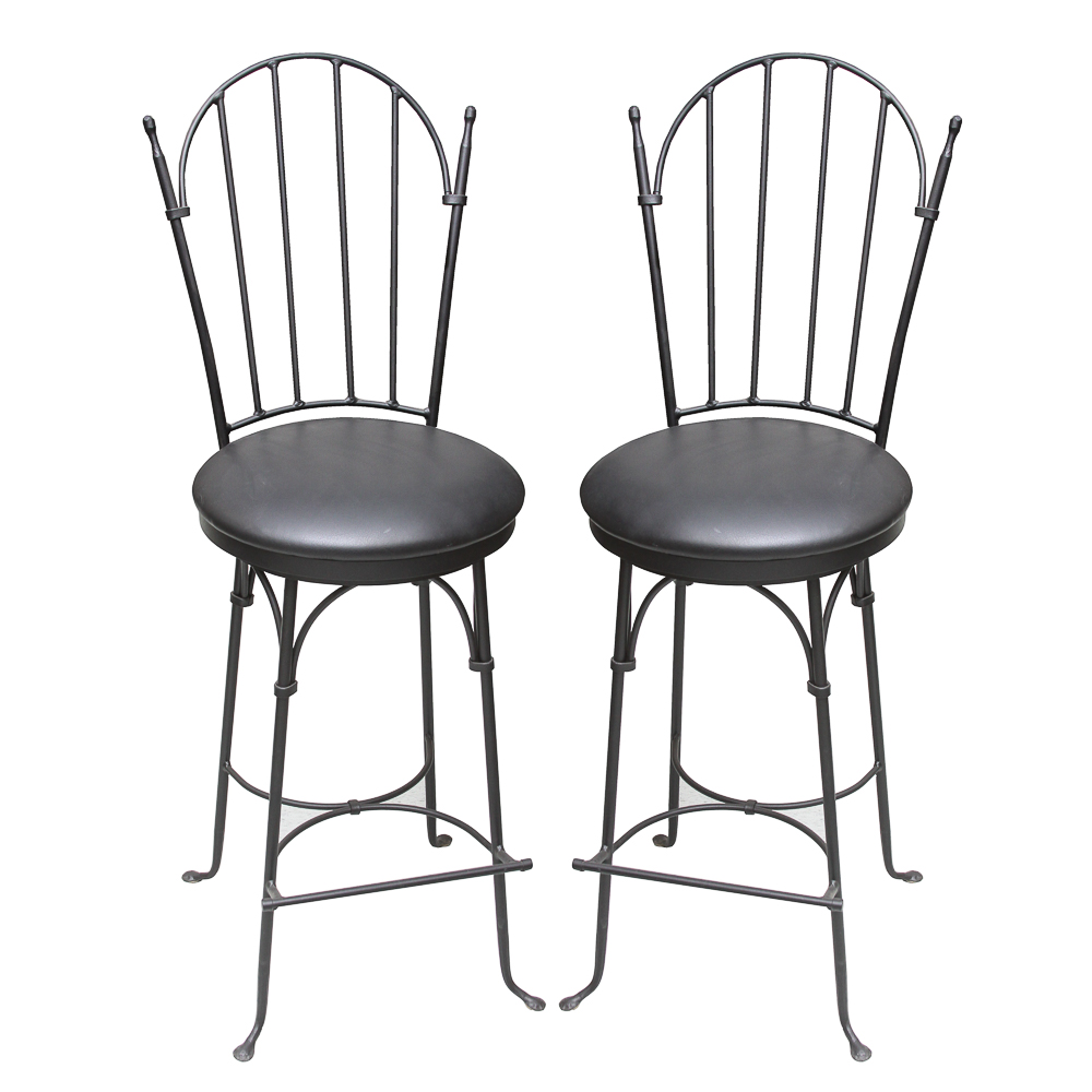 Metal bar stoolsinmon vintage wrought iron rotating high stool black bar chair swivel counter stool with leather seat and crown back backrest set of 2ship from usa black 53495349. These metal swivel counter stools are all hand forged here in the hills of arkansas and will provide style and comfort for generations to come. The legs are tubular and curvy reinforced by durable stretchers.