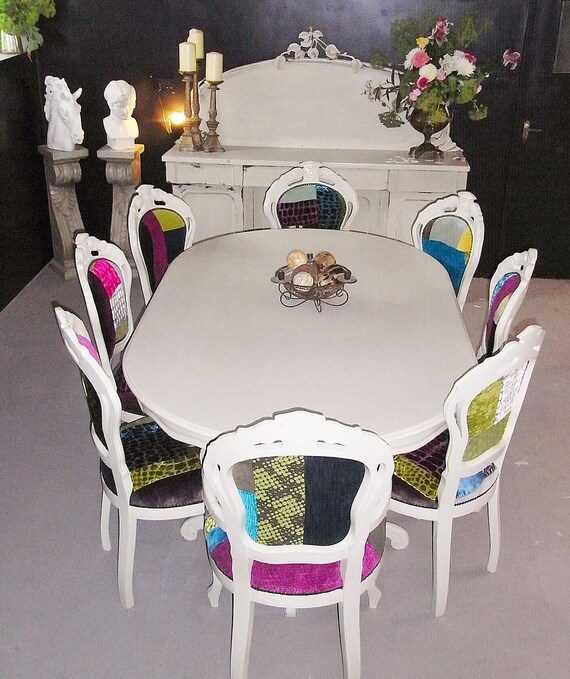 Painted Dining Table And 6 French Style Painted Patchwork Etsy