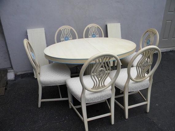 French Painted Dining Table With 6 Chairs And 2 Leaves 3443 Etsy
