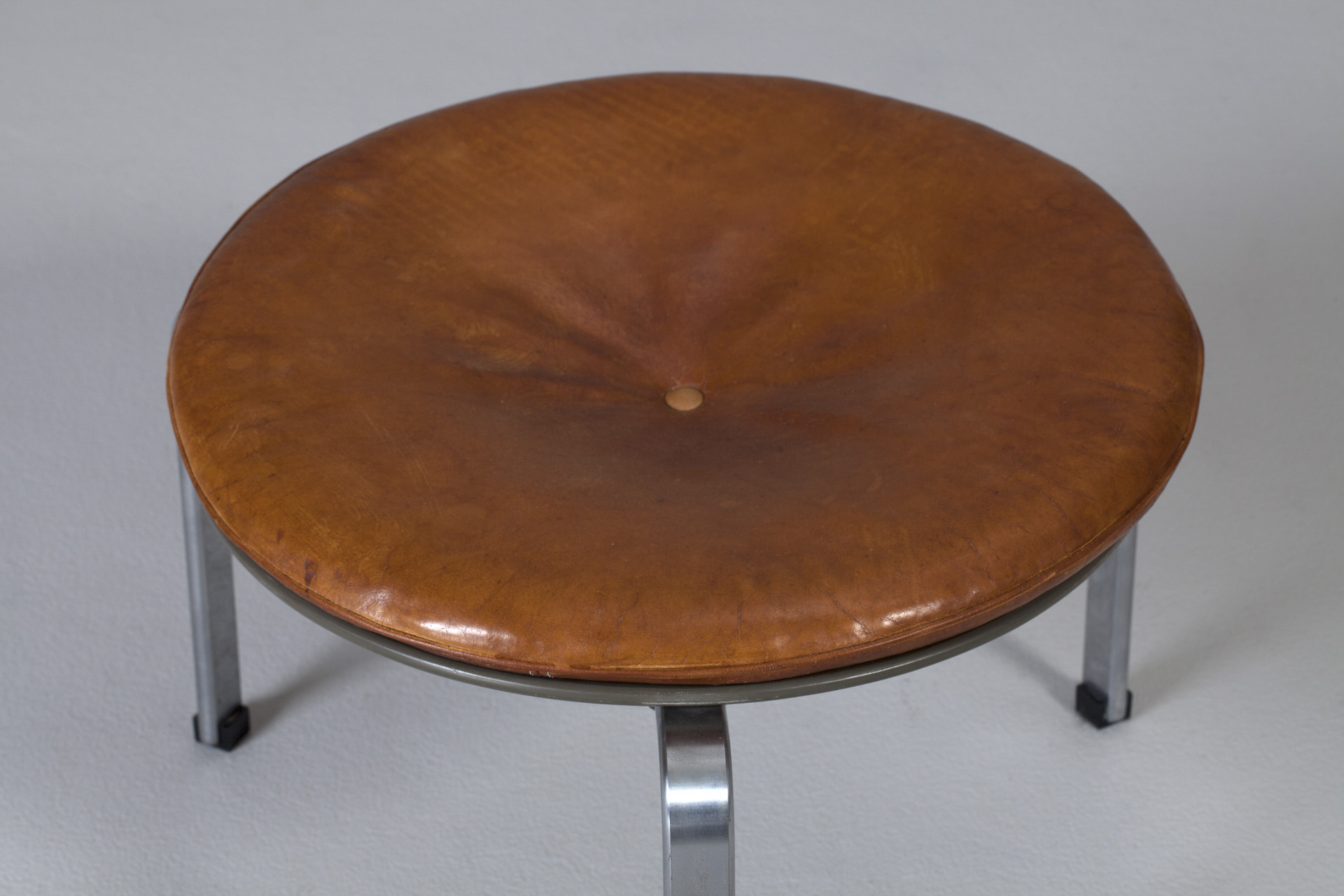 A Poul Kjaerholm Brown Leather And Steel Pk 33 Stool Fritz