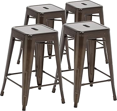 Complete with a metal foot bar support around the base channel your rustic style and perfect the seating arrangement around your breakfast bar or high top table. Galvanized metal bar stool is made of galvanized metal and it offers a flared leg construction with a square seat and a coordinating distressed metal back. This backless bar stool features a hammered silver seat with mdf legs in a medium brown color.