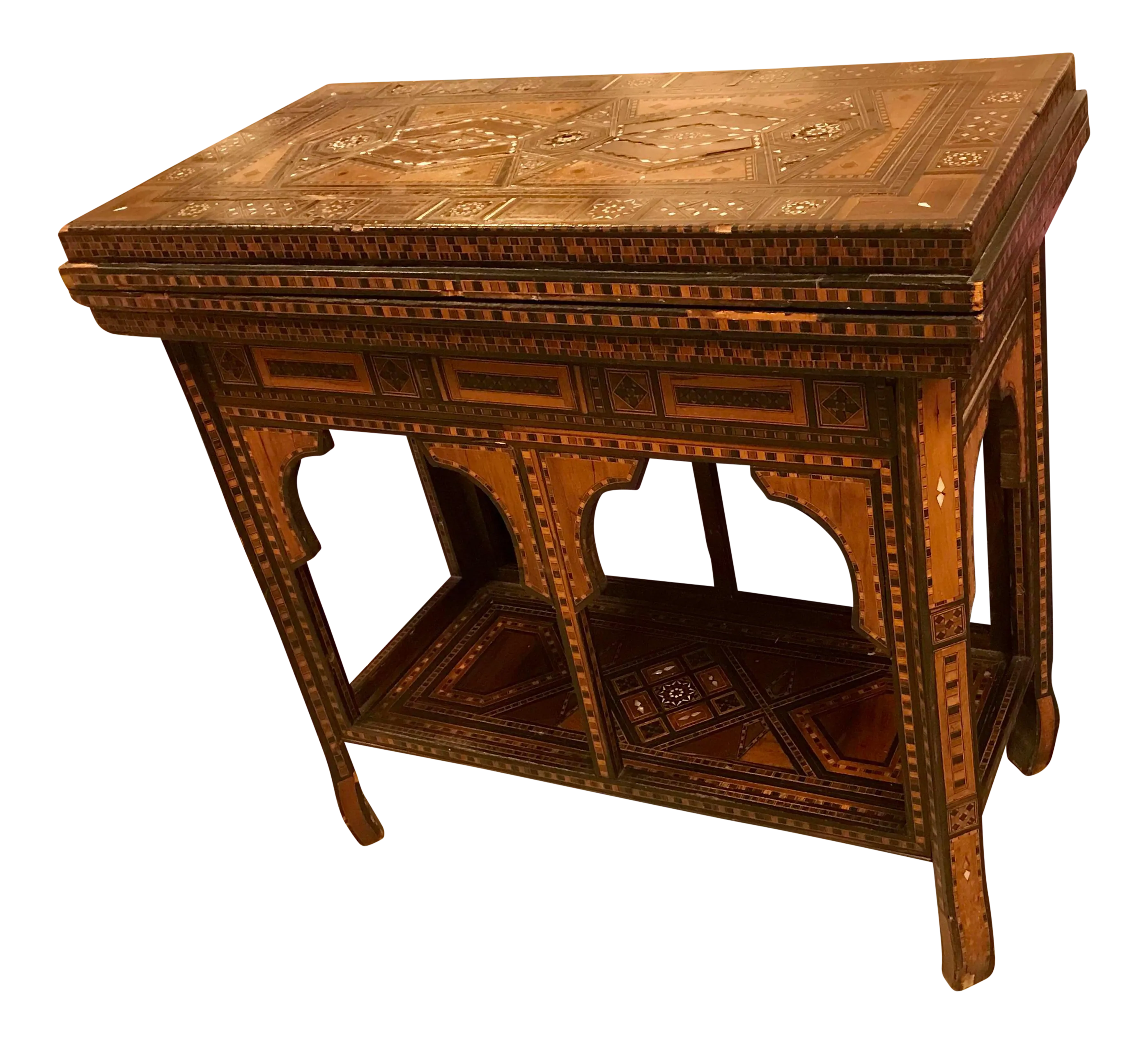 Early 19th Century Syrian Antique Inlaid Folding Game Table With