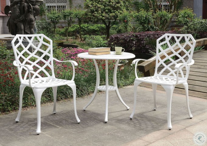Crary White Outdoor Bistro Table Set From Furniture Of America