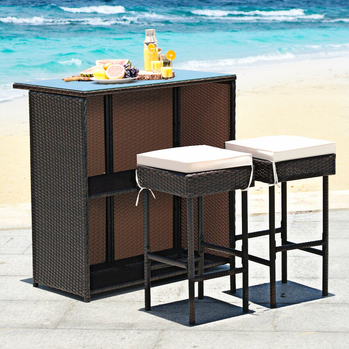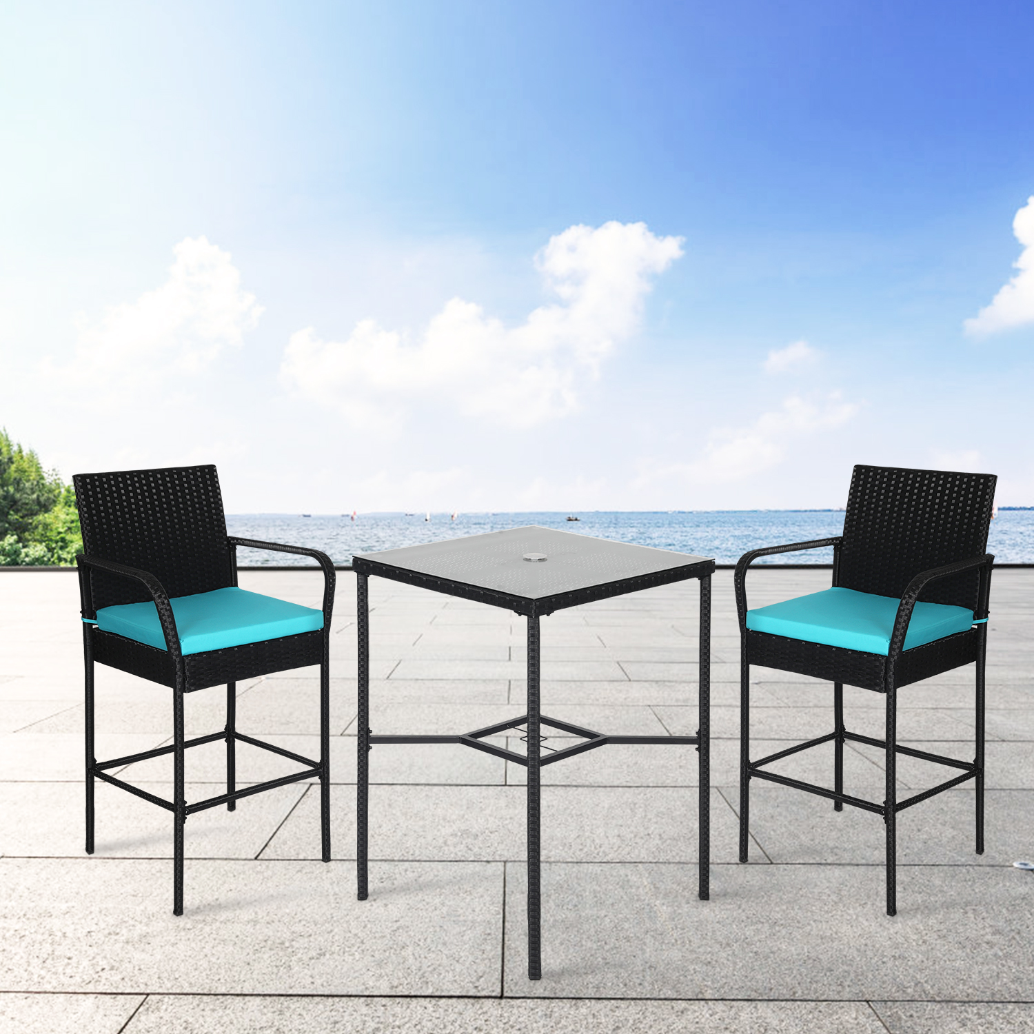Perfect for your backyard deck patio or by the pool. Mcombo 3pcs black wicker bar set patio outdoor table 2 stools furniture. 46999 list price you save 23499 50.