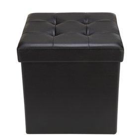 Black Faux Leather Upholstered Square Foldable Footstool Bench