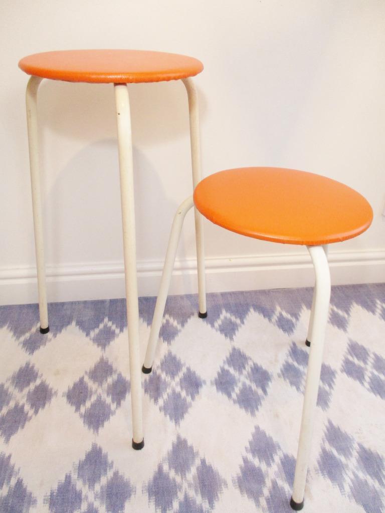1 X Vintage 60 S Kitchen Tripod Stool White Metal Orange Vinyl